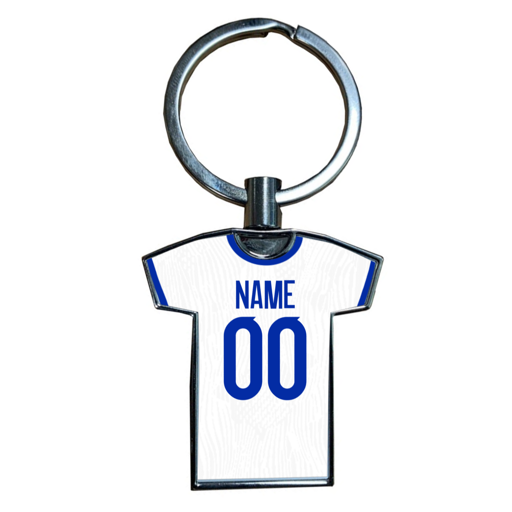This shirt shaped metal keyring is approx 35mm x 38mm and printed single sided.